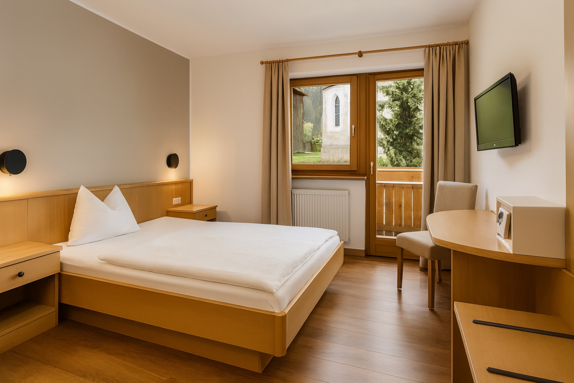 If you are looking for an accommodation at Plan de Corones/Kronplatz, we invite you to stay at our cosy, traditional yet modern 3-star hotel near Brunico/Bruneck. Here we await you with a warm ambience and spacious rooms offering every comfort. All our rooms have a writing desk, sat TV and safe, bathroom with shower and toilet, balcony and a view to die for. At an extra fee, the double rooms are also available for single use.